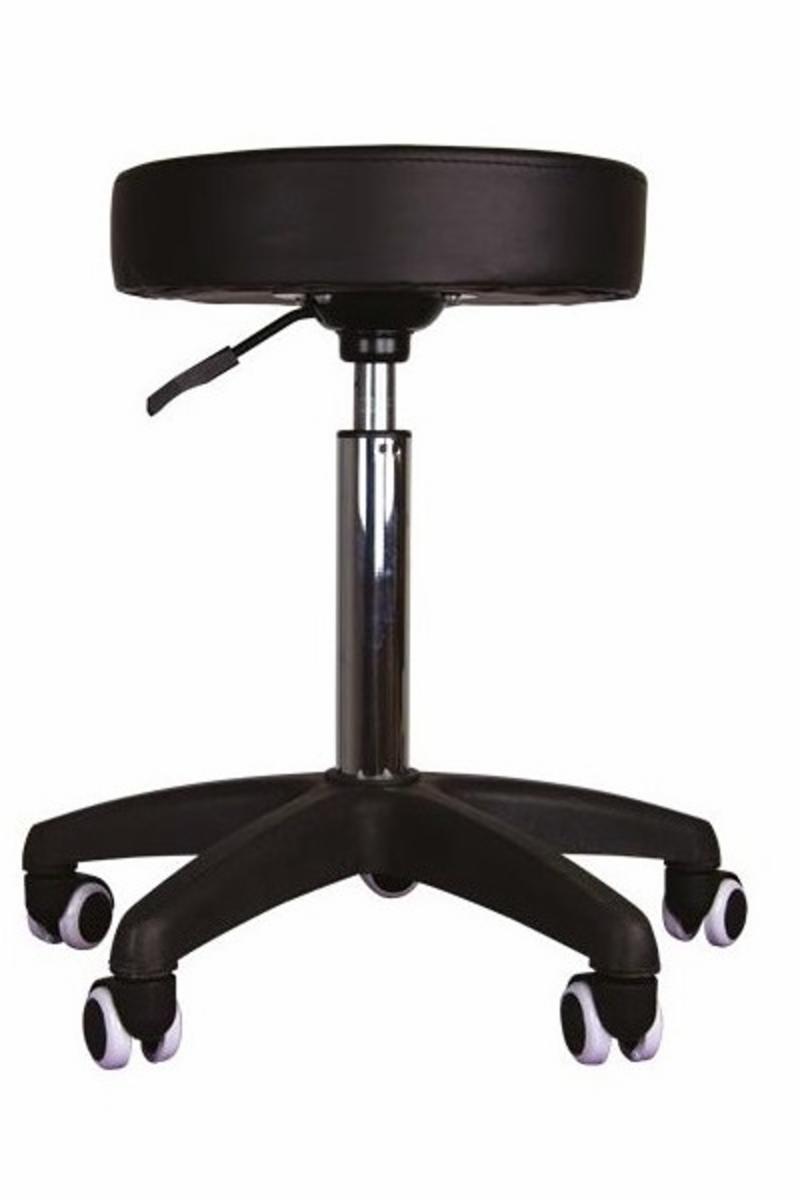Höj- och sänkbar trimstol på hjul, perfekt för hemmafrisören. Stolen har vadderad, rund sits med en tjocklek på 8,5 cm.