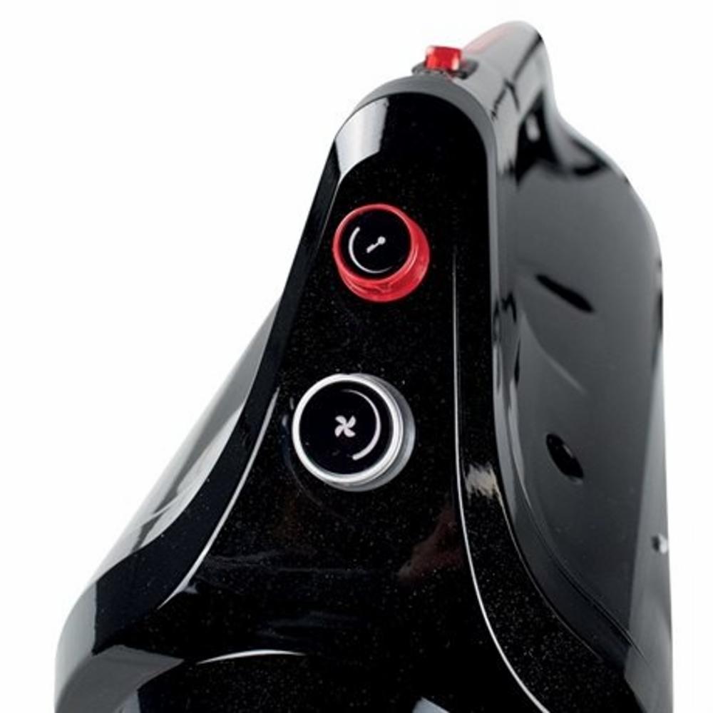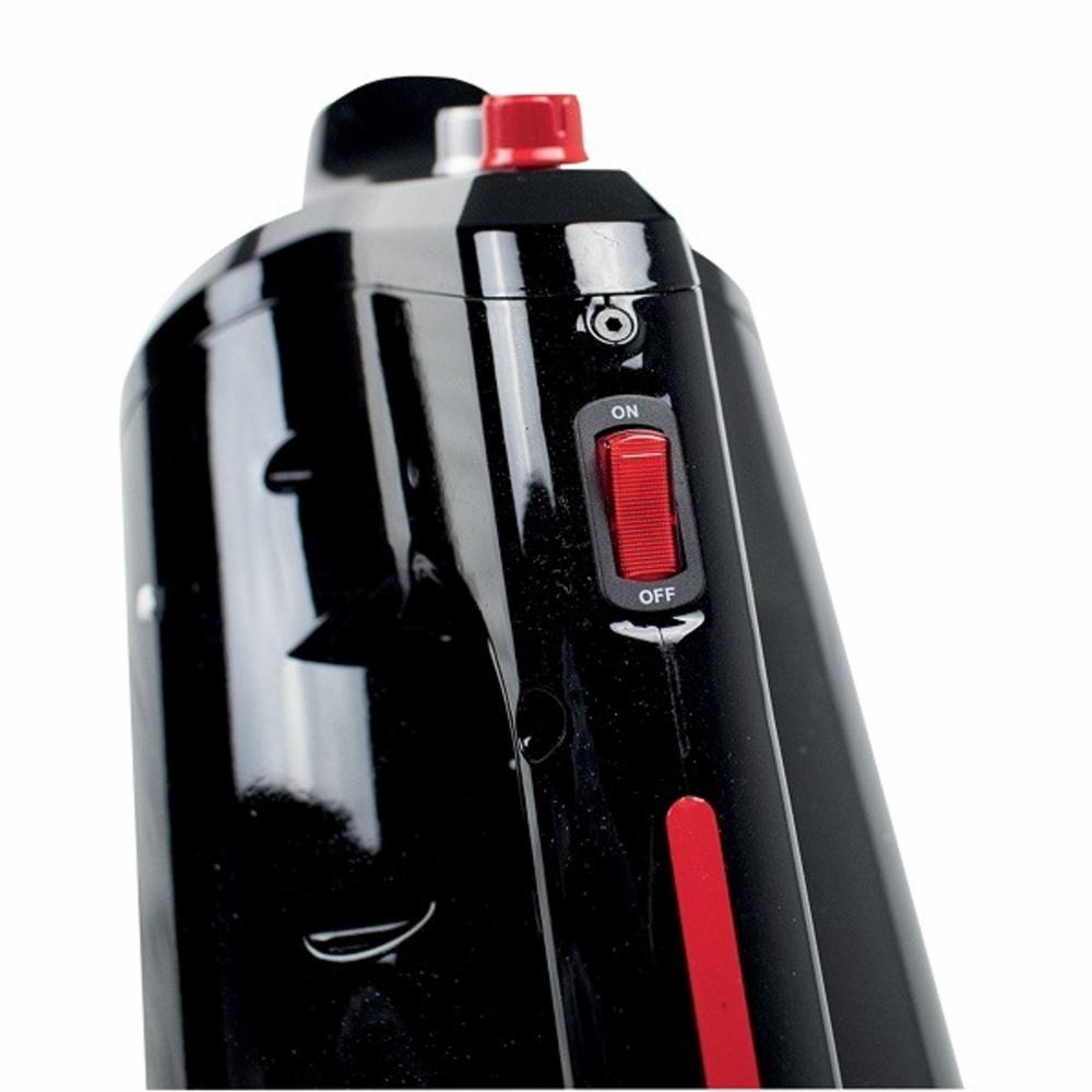 Fönen är svart med diskret glittrig finish, slang och munstycken är röda.