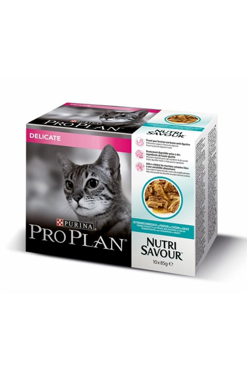 PRO PLAN DELICATE NUTRISAVOUR är ett komplett och balanserat foder som innehåller alla viktiga näringsämnen, bland annat en prebiotika som är bevisat att främja en sund matsmältning. Den kombinerar den näring du vill ge med en smak hon älskar.