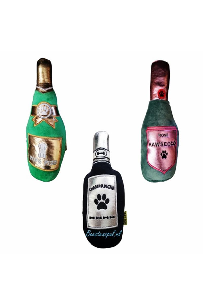 Roliga flaskor med pip, ge bort en flaska Pawswcco, Champawgne eller Pups Fizz. Ca 26cm