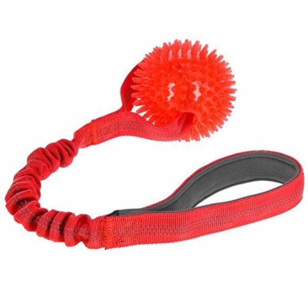 Bungee med gummiboll är en rolig aktiveringsleksak för din hund. Bollen har mjuka piggar och är tillverkad i hållbart TPR-gummi, ett material som är skonsamt mot hundens tänder och tandkött. Det röda expanderbandet med handtag är elastiskt. En perfekt hundleksak för apportering, kast- eller kamplekar.