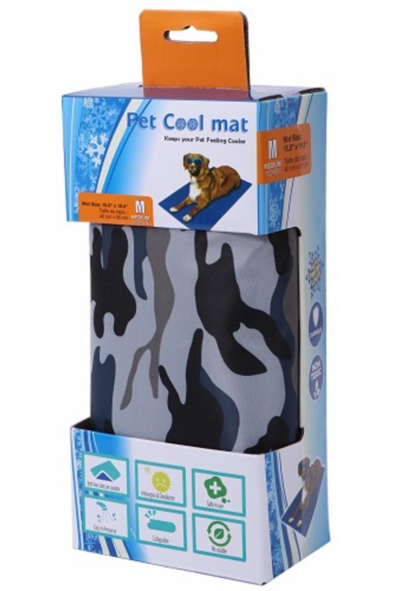 Kylfilt till hund. Absorberar kroppsvärmen och gör så att värmen avdunstar upp i luften via dom delar av filten som hunden inte ligger på. Filten aktiveras när hunden lägger sig på den. Innehåller giftfri gele, som inte kräver kyl eller frys. Ytan torkas av med en fuktig trasa. Hundens kroppsvärme gör att mattan värms upp, så det är bäst att ta bort den efter en stund och låta luften kyla filten igen. Båda sidorna går att använda. Går bra att vika ihopa.
