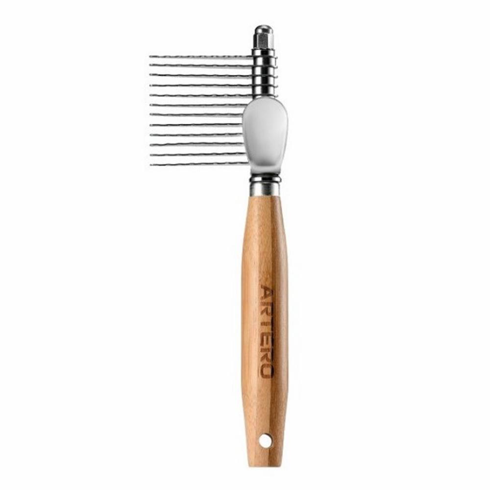 Artero tovdelare med långa blad är ett effektivt och säkert pälsverktyg för eliminering av tovor. Har din hund tovor som inte är möjliga att reda ut med kam, borste eller karda är detta ett perfekt verktyg att använda. De vågiga bladen är mycket vassa och delar enkelt även kraftiga tovor. Säker att använda tack vare bladens rundade toppar och fingerstödet för tummen. Bekvämt och greppvänligt handtag i bambu.