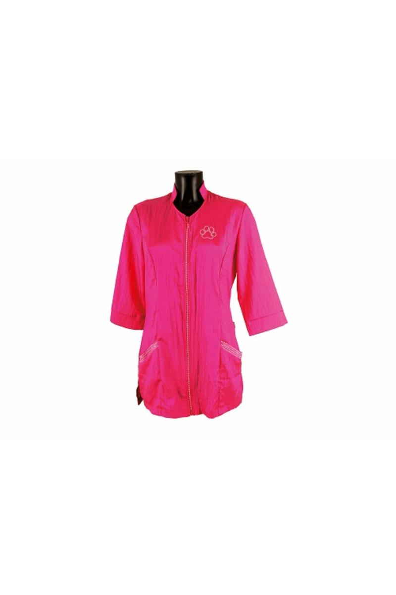 Dragkedjan är av två vägsmodell och skjortan har två fickor fram. Vacker tassdekor av strass