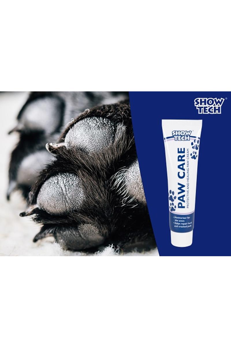 För att ge hundar den bästa vården är det viktigt att även underhålla och skydda sina tassar. Pawfect skydd Precis som fallet är med människor och deras händer och fötter glöms ofta korrekt vård av hundens tassar bort. Det är dock viktigt att ta hand om och skydda dem också. Vintern kommer med snö och is, vilket kan vara väldigt kallt men också skarpt och smärtsamt för din hunds känsliga tassar och trampdynor. Vägsalt kan orsaka irritation och skada din hunds trampdynor också. Under sommaren kan gatorna vara varma för ditt husdjur att gå på och i vissa fall är asfaltiga gator också väldigt tuffa. Vi har våra skor som skydd, men hur är det med våra älskade hundar? Show Tech Paw Care är en skyddande och återställande kräm som håller ditt husdjurs tassar, tår och trampdynor återfuktade och friska året runt. Den här underbara lugnande krämen ger alla viktiga näringsämnen som behövs för att hålla dynorna friska, starka och återfuktade. Den hjälper till att förhindra sprickor och torrhet och är idealisk när du vill ta med din hund på en promenad i grov, smutsig och våt terräng som i en skog eller åker och på varma eller iskalla gator. Din hund kommer att kunna gå, springa, jaga och leka säkert i alla väderförhållanden! Även perfekt för hundar som har för vana att ständigt slicka sina tassar. Har din fyrbenta vän torra och grova tassar? Inte längre! Denna lugnande, återfuktande och skyddande Paw Care kommer att ge din hund friska tassar och trampdynor.