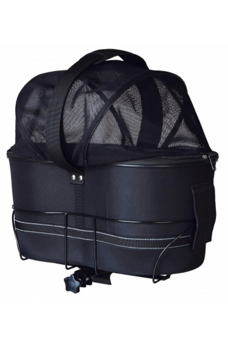 Cykelkorg för pakethållare. Robust metallram som fästes på pakethållaren. Själva väskan sätts ner i metallramen och fästes med kardborreband. Kan även användas som transportväska, då väskan är enkel att ta lös.