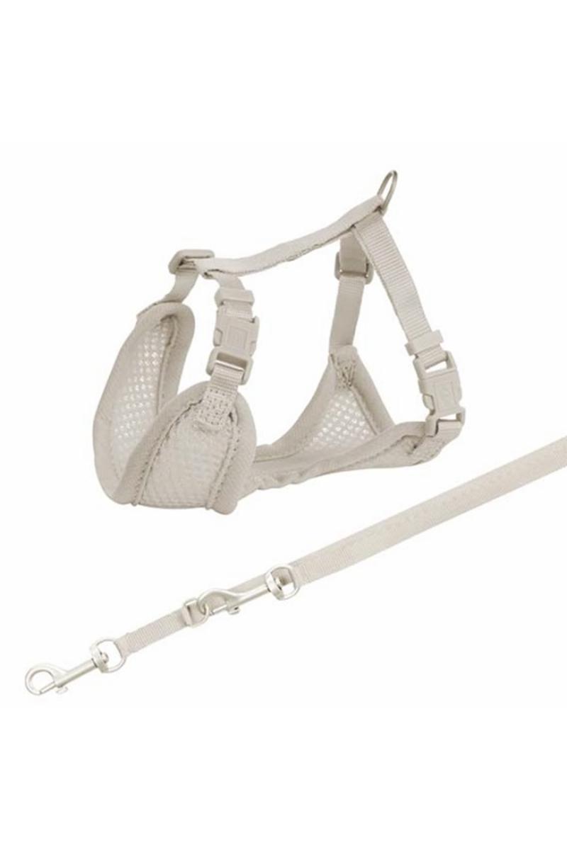 Junior puppy soft sele med koppel, 26-34 cm/10 mm, 2.00 m, grå nätmaterial och band hals- och magrem kontinuerligt justerbar koppel justerbart i 3 steg