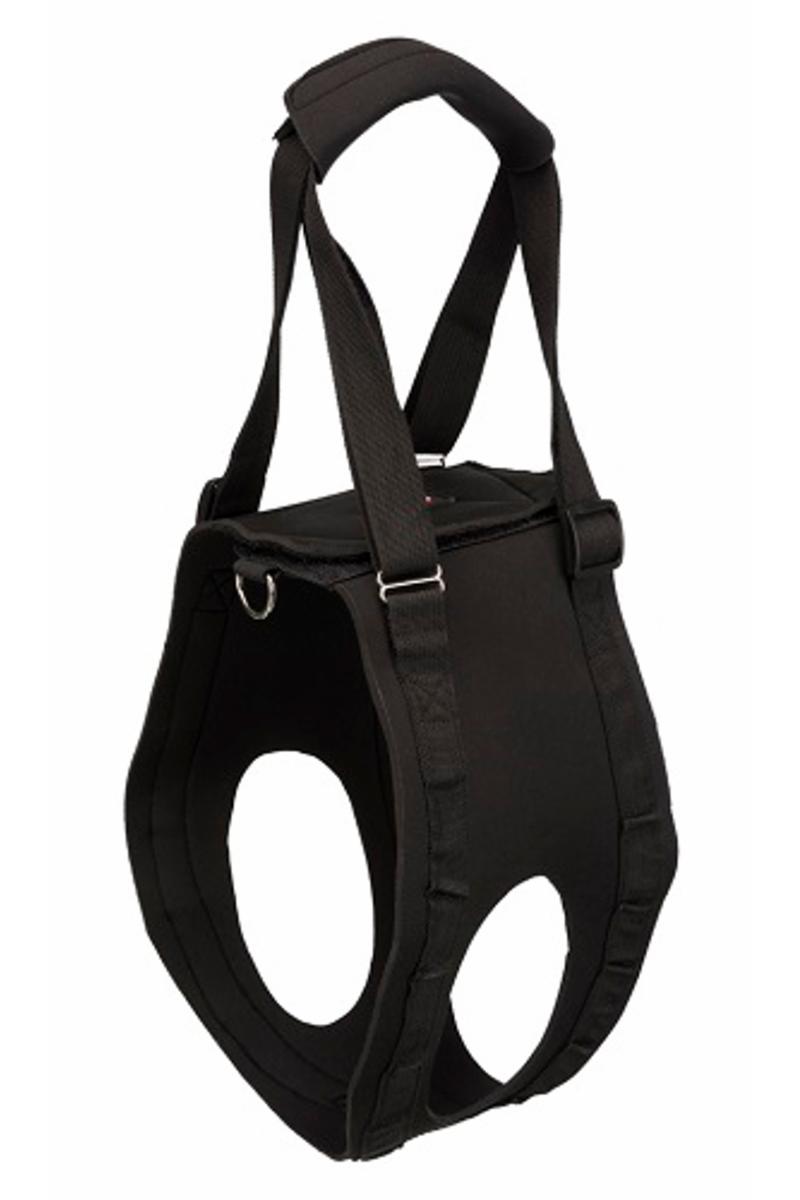 Beskrivning Promenadhjälp tillverkad av neopren/polyester som gör den bekväm för hunden att bära. Kan användas för att hjälpa och stabilisera upp äldre hundar, hundar som genomgått en operation, lider av sjukdom eller förlamning. Ett bra hjälpmedel för hundar som har svårt att gå i trappor eller behöver hjälp att ta sig in i bilen. Promenadhjälpen stöttar upp delar av kroppen som behöver extra stöd för att ex. gå. Kan användas på både fram- och bakben. Kan maskintvättas i 30°C . Denna storlek passar hundar upp till 35 kg. Färg: svart