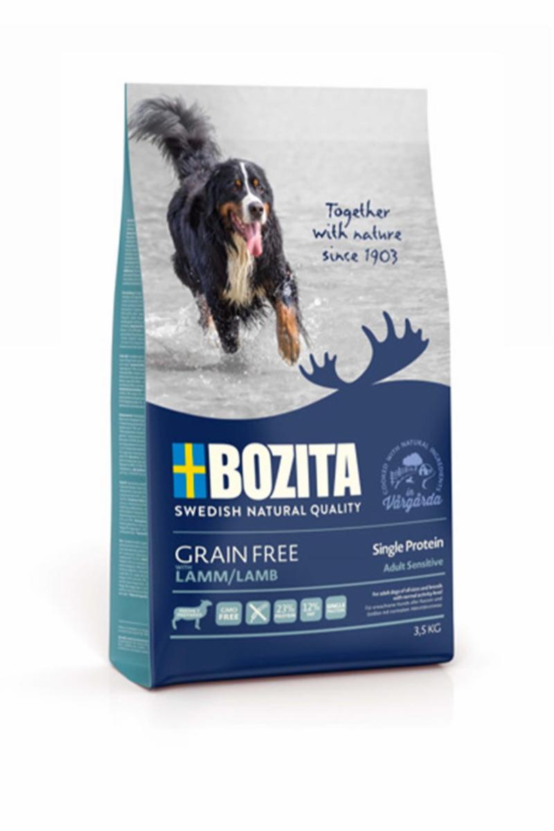 Sammansättning: Lamm 31% (färsklagat lamm* 15%, torkat lamm 13%, lammbuljong 3%), ärtstärkelse*, torkad potatis*, benfett* (6%), potatisprotein*, torkad betmassa*, mineralämnen, lignocellulosa*, linfrö* (1%), jäst*. *Naturliga råvaror. Tillsatser (per kg):