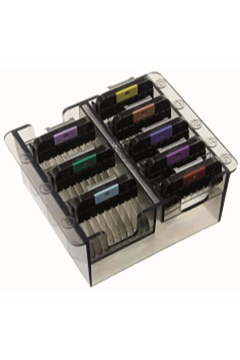 Wahl distanskammar i rostfritt stål. Distanskammarna är färgmarkerade så man enkelt ser skillnad på storlekarna. Passar på standard snap on-skär #10, #15 eller #30 Använd ej på skär #40 eller #50 Lämnar: 3, 6, 10, 13, 16, 19, 22 och 25 mm.