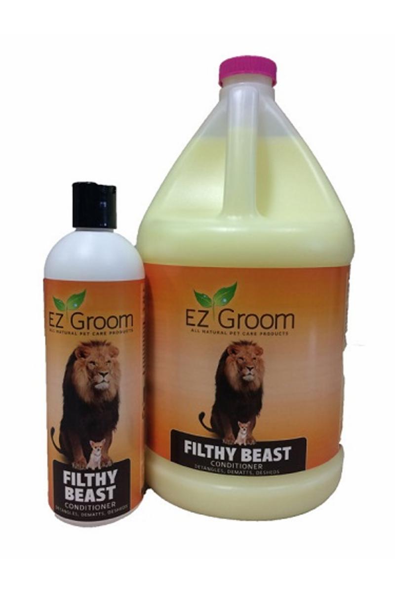 Rika mjukgörande medel, närande växter och sidenproteiner ger pälsen fyllighet och textur genom att låta varje hårsäck och hårstrå absorbera och behålla fuktigheten. FILTHY BEAST® konditioneringsbehandling förseglar varje hårstrå och reparerar kluvna toppar, vilket hjälper till att minska hårbrott. Specialpolymerer hjälper till att lämna pälsen trasselfri och fri från statisk elektricitet, vilket avsevärt förbättrar kamningen. Denna behandling förblir låst i varje hårstrå och håller pälsen i toppskick, vilket gör det lätt att kamma mellan baden. Håll utom ögonen. Bruksanvisning: Schamponera först, applicera sen Filthy Beast Conditioner till den fuktiga pälsen. Arbeta in balsamet i pälsen. För en lyxigare känsla, lämna balsamet i pälsen i 5 minuter, skölj noga och styla pälsen. Går att spädas upp till 4:1. Säker för katten när den är utspädd.