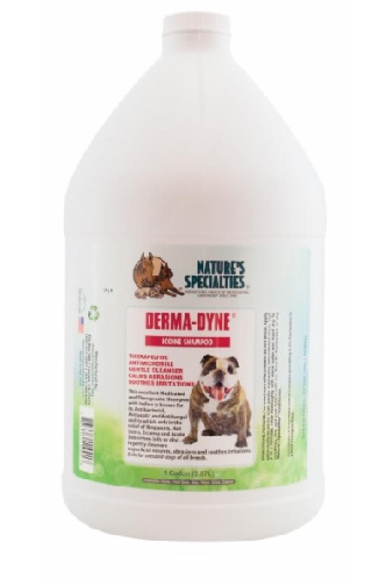 Derma-Dyne Shampo för hund & katt.... Detta utmärkta terapeutiska shampo med jod är känd för sin antibakteriella, antiseptiska, antisvamp förmåga. Hjälper till att lindra bl a ringorm, hot spots, eksem och akut seborré (fet och torr hud). Den rengör skonsamt ytliga sår och lugnar irritationer. Bäst att använda outspädd. Säker för hundar, katter och andra husdjur. Häll rikligt med outspätt shampo på det irriterade hudområdet och massera mjukt in det. Låt det verka i 2-5 minuter, innan det sköljs ur noggrant med ljummet vatten.