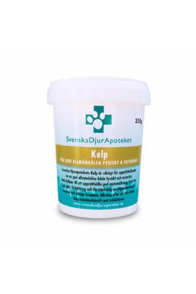Svenska DjurApotekets Kelp som är ett knöltångspulver är en populär produkt när det kommer till bättre päls och klor men även till utställningsdjur som tappat pigmentering i munnen. Kelp hjälper till att upprätthålla god matsmältning och främjar munhälsan. Kelp hjälper ditt djur att hålla en högre motståndskraft mot infektioner. Kelp innehåller naturligt stora mängder med vitaminer, mineraler och ett tjugotal aminosyror samt riklig mängd Omega-3 fettsyror. Vitamin 1,B1, B2, B3, B12, C, E. Kalcium, koppar, jod, järn, litium, magnesium, fosfor, kalium, selen, kisel, svavel, zink, krom, kobolt, mangan, niacin, riiboflavin, sodium. Till alla djur oavsett ålder, dock ej till små valpar under 6mån. För djurets allmänhälsa både fysiskt och exteriört. Till djur som behöver hjälp att sätta vinterpäls och främja en bra pälskvalitet. Till djur för att främja en god munhälsa och matsmältning. Till utställningsdjur som tappat mun eller nospigment. Ingredienser: knöltångpulver Deklaration per dosmått á 3.6 g: (5 ml) Knöltång 3.6 g Kelp Dosering Blandas i maten en gång/dag. Doseringsmått medföljer i förpackningen Räcker ca: 350g Katt och liten hund upp till 10 kg 1/2 dosmått/dag 194 dagar Hundar mellan 10-25 kg 1-2 dosmått/dag Upp till 97 dagar Hundar mellan 25-40 kg 2-3 dosmått/dag Upp till 49 dagar Hundar över 40 kg 4 dosmått/dag 25 dagar