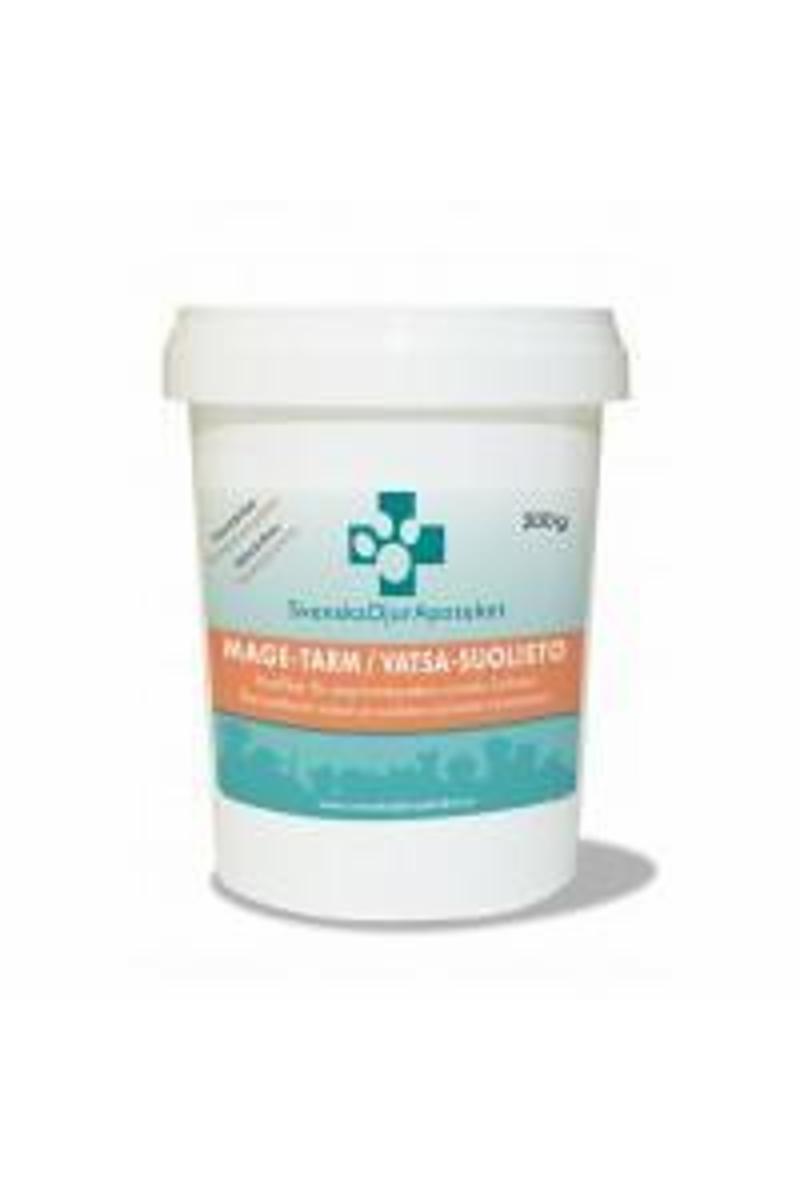 Svenska DjurApotekets Mage-Tarm är ett psylliumfrö som innehåller rikligt med gelbildande kostfibrer för mag-tarmkanalens normala funktion. Om hunden eller katten har trög alt. lös mage, så hjälper Mage-Tarm till att få en normalt fungerade avföring. Ingredienser: Psylliumfrö(Psyllium Husk). Deklaration per dosmått á 3,5 g (5 ml) Psylliumfrö 3,5 g Mage-Tarm Dosering Blandas i maten två gång/dag. Doseringsmått medföljer i förpackningen Räcker ca: 200 g Katt och liten hund upp till 10 kg 1/2 dosmått 2ggr per dag 57 dagar Hundar mellan 10-35 kg 1 dosmått 2ggr per dag 29 dagar Hund 35 kg + 1 1/2 dosmått 2 ggr per dag 19 dagar Blandas samman med 50-150ml vatten.