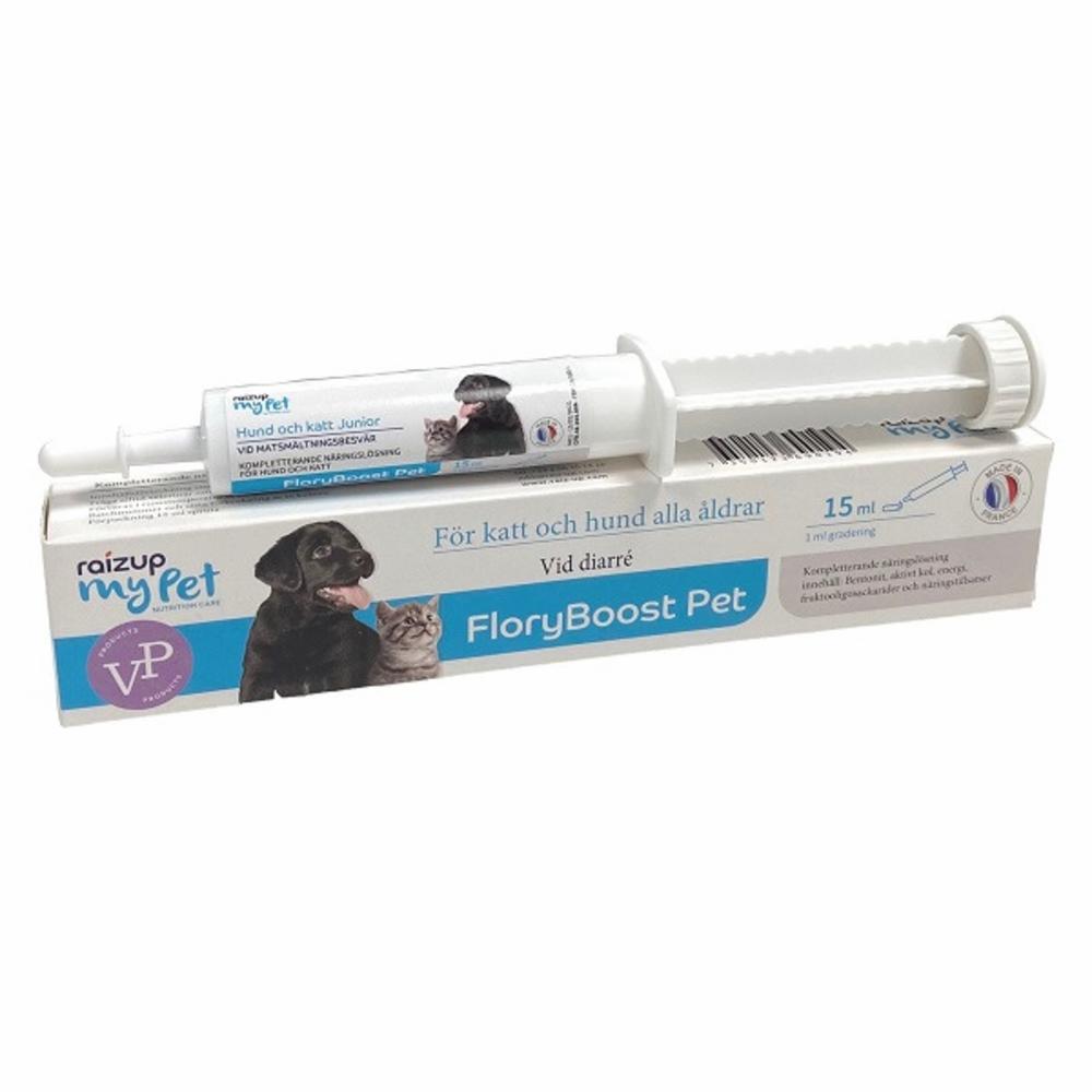 FloryBoost Pet är en kompletterande näringslösning för hundar och katter i alla åldrar. FloryBoost skyddar och hjälper magen att återhämta sig när din hund eller katt har akut diarré eller matsmältningsproblem.