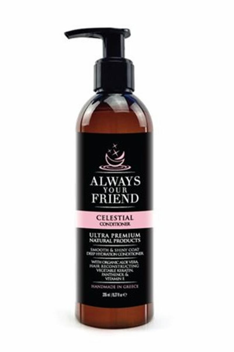 Always Your Friend Celestial Balsam är en intensivt återfuktande behandling för torr eller skadad päls. Balsamet är tillverkat med naturliga ingredienser och innehåller bland annat organisk aloe vera, organiskt sockerrörsbaserat mjukgörande medel, panthenol, vitamin E och avancerade pälsåterställningsmolekyler.