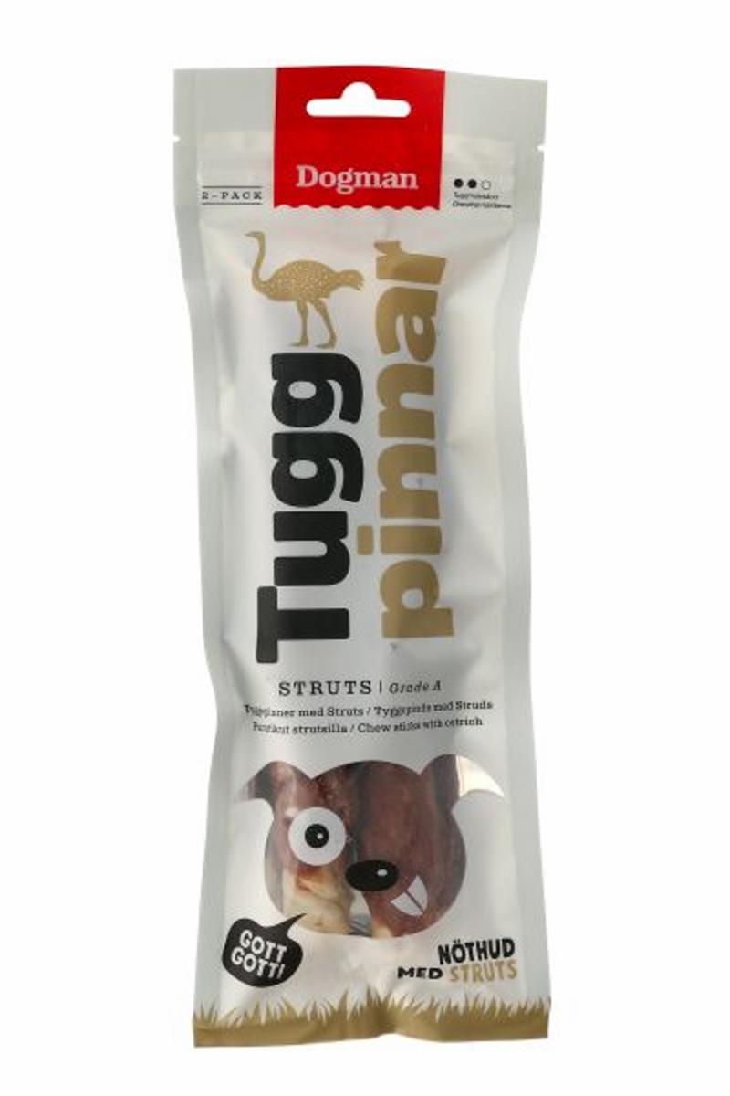 Tuggpinnar med delikat strutskött lindat utanpå. Perfekt till kräsna eller känsliga hundar! Spannmålsfri och utan tillsatt socker. Tillgodoser tuggbehovet och bidrar till en sund tandhälsa. Håll alltid hunden under uppsikt när den tuggar på tuggben.