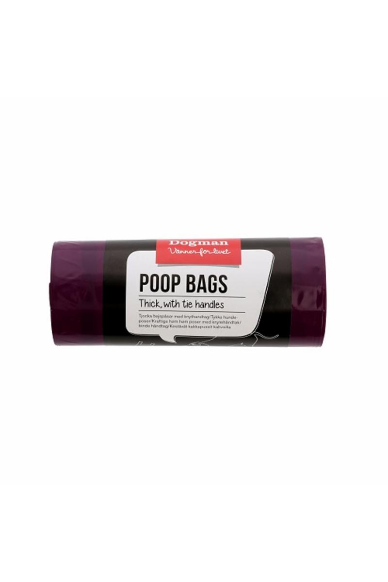 Tjock, kraftig och slitstark bajspåse med knythandtag i fin lila färg.