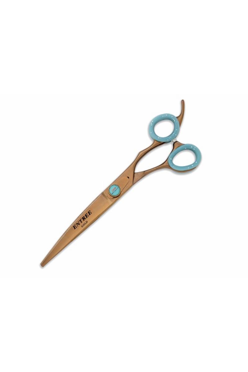 Geib Entree Gold 8,5" svängd sax Geib Entree Gold-serien är av hög kvalitet som tillverkas med hjälp av de senaste materialen, teknologin och metoderna. Geibs hantverkare kombinerar moderna material och teknik med deras precisionsförmåga och personliga omsorg och stolthet för att ge en exceptionell produkt. Resultatet är våra fina saxar som är lika tilltalande att titta på som de är bekväma att använda. Japanskt stål Rostfritt stål Konvexa blad Förskjutna handtag 8,5 tum från fingerstöd till spets (ca 21,25cm) NIVÅ 2 - Vardags-sax för dagligt professionellt bruk.