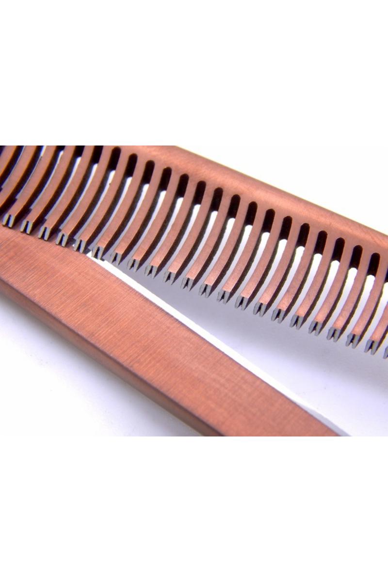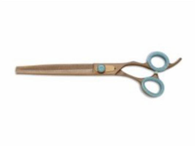 Geib Entree Gold Effiler 8,0" 50 tänder Geib Entree Gold-serien är av hög kvalitet som tillverkas med hjälp av de senaste materialen, teknologin och metoderna. Geibs hantverkare kombinerar moderna material och teknik med deras precisionsförmåga och personliga omsorg och stolthet för att ge en exceptionell produkt. Resultatet är våra fina saxar som är lika tilltalande att titta på som de är bekväma att använda. Perfekt urtunningssax för alla pälsar. Japanskt stål Rostfritt stål Konvexa blad Förskjutna handtag 6,5 tum från fingerstöd till spets (ca 20cm) NIVÅ 2 - Vardags-sax för dagligt professionellt bruk.