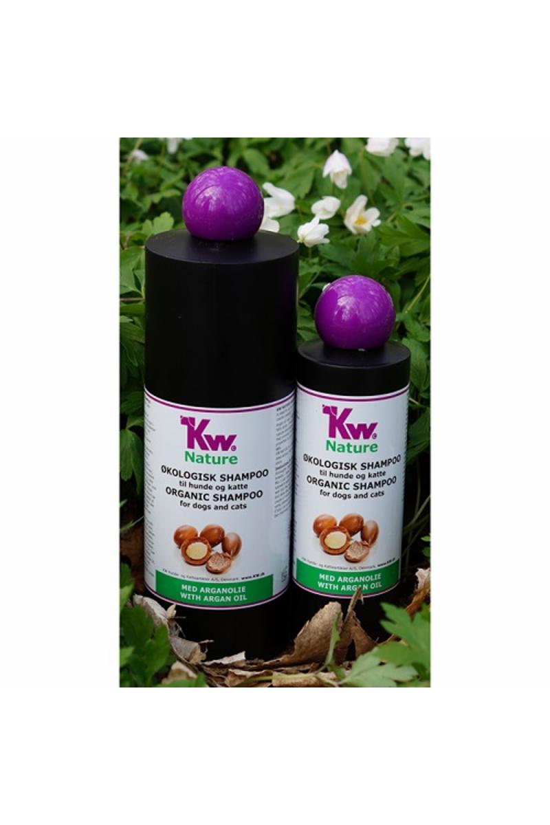 KW Nature Arganolje Shampoo passar till alla pälstyper (utom strävhårspäls). Argan Oljan har en hög koncentration av essenstiella fettsyror, Omega 6, Omega 9 och naturliga antioxidanter, vitamin E och A, som hjälper kroppen att skydda och reparera huden. KW Nature är ett naturligt alternativ, djuprengörande som lämnar pälsen ren och skinande. BRUKSANVISNING: Borsta igenom pälsen noga. Blöt pälsen med ljummet vatten. Mixa 1 del schampoo och 3 delar ljummet vatten i en blandningsflaska. Gnugga in det väl i pälsen. Massera och låt schampoot verka i några minuter. Skölj noga med ljummet vatten. Om hunden eller katten är mycket smutsig, upprepa proceduren. Undvik ögonkontakt.