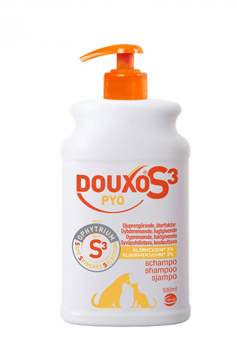 DOUXO®S3 Pyo Schampo och mousse har en unik formulering som kombinerar 4 olika aktiva ingredienser: