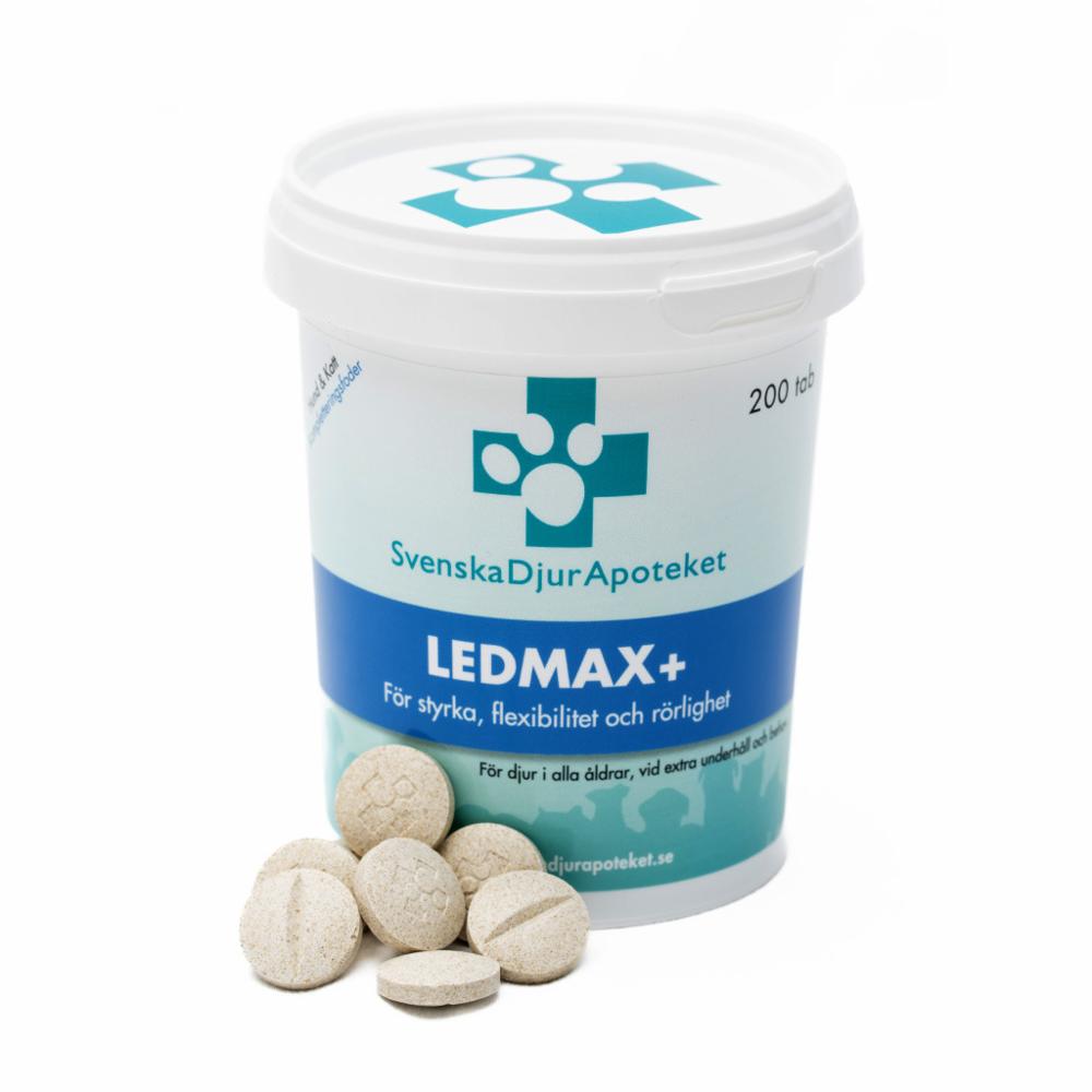 Svenska DjurApotekets LedMax+ är en kombination av flera olika ledprodukter som Glukosamin, MSM, Grönläppad Mussla, Kondroitin, Kollagen, Hyaluronsyra och C-vitamin.