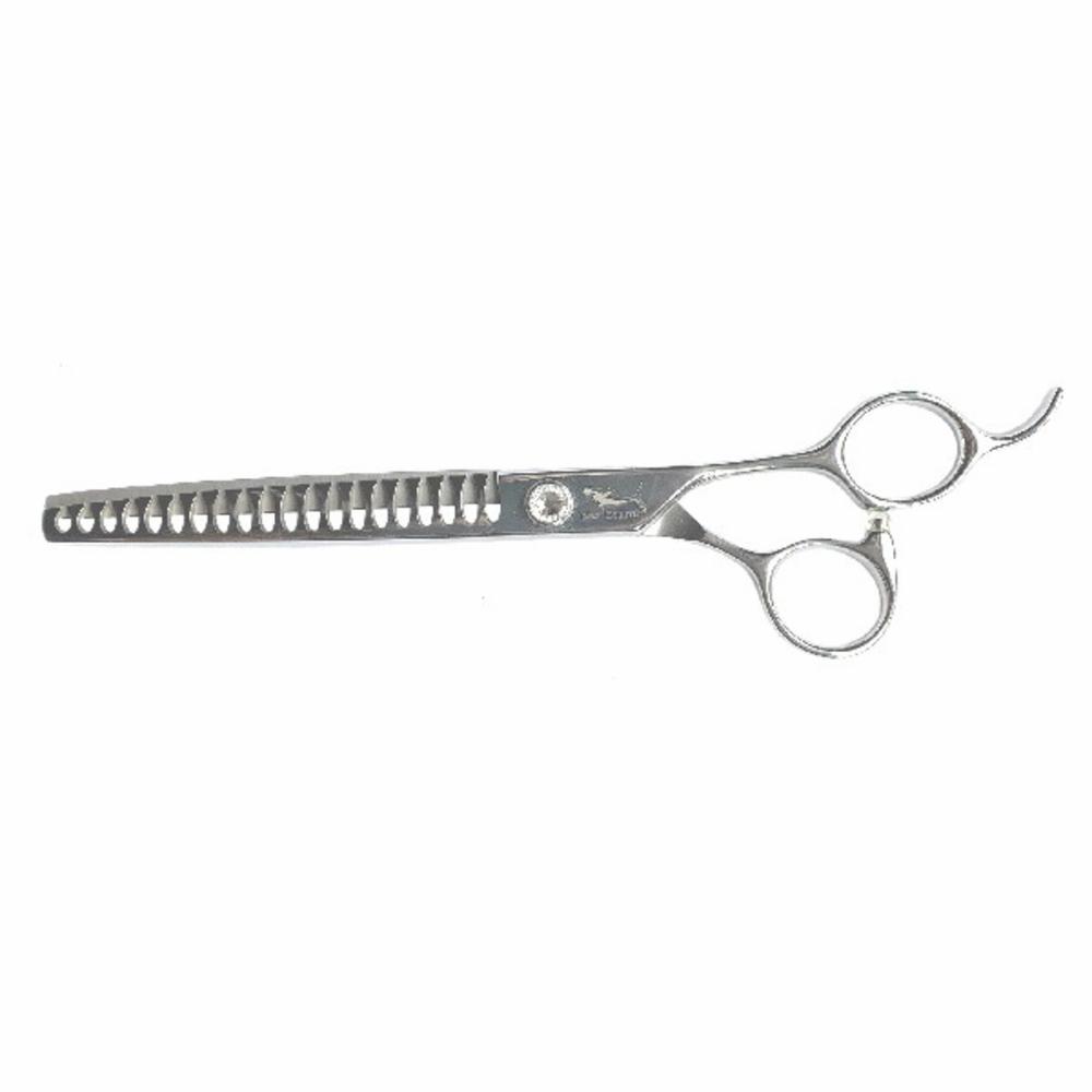 Shark 5-stjärnig chunker-sax är ett idealiskt val för salongen eller den som klipper mycket. En chunker (blending thinner) kan beskrivas som en unik kombination mellan en rak sax och en effileringssax. En chunker klipper ur mer päls än en effileringssax men ger en mjukare linje än en rak.