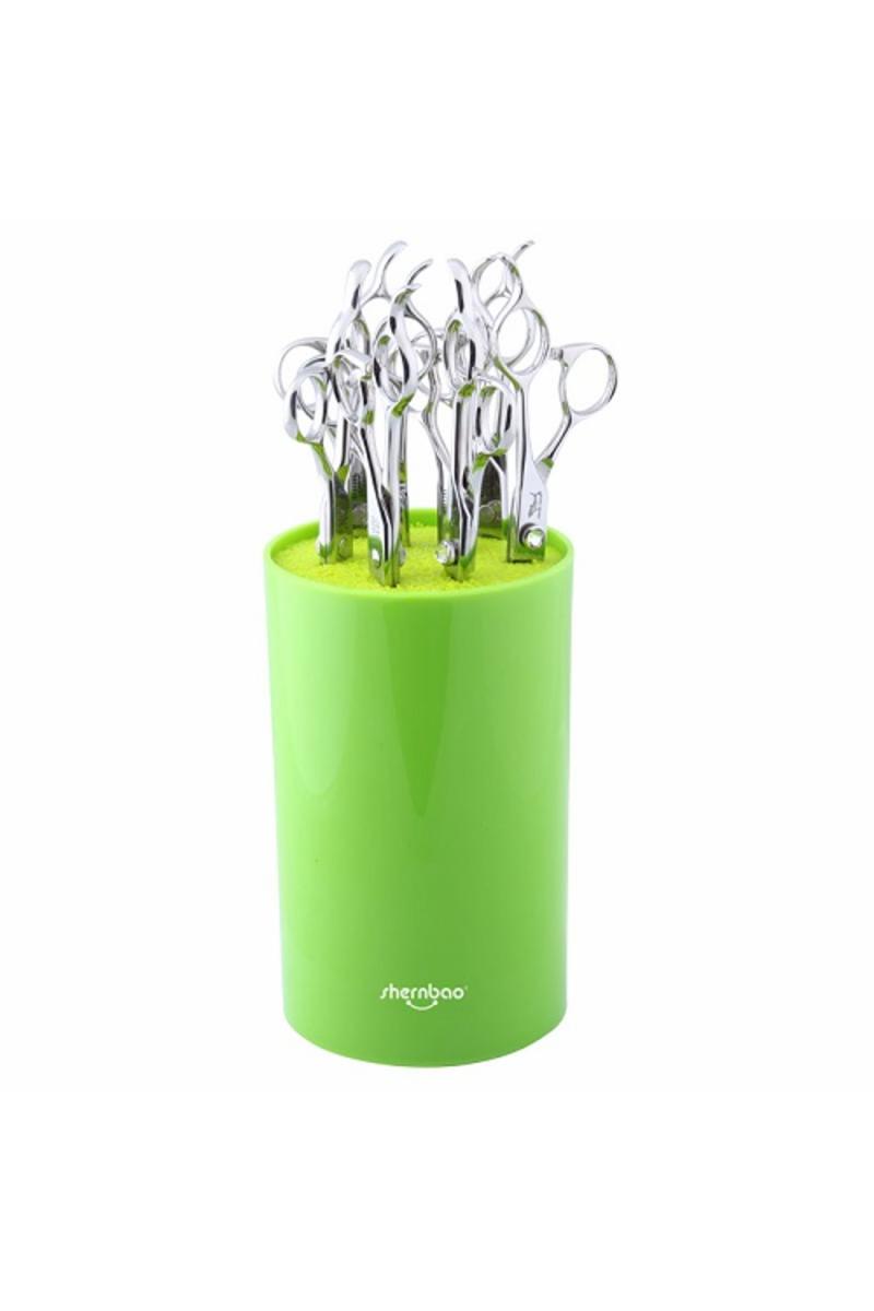 Ett ypperligt saxställ, kan även anv till trimkniv etc. Vid rengöring av produkten, vänd upp och ned på den tag ut borsten och skaka. Diameter 11cm Höjd 18cm.