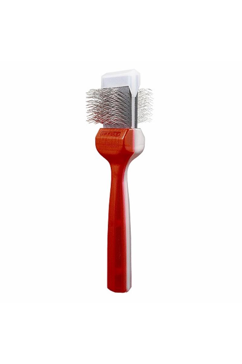 ActiVet, ursprungstillverkare av den Tyska flexibla kardan. Karda/Slicks 4,5 cm bred, med flexibelt huvud, Det unika med denna karda/slicks är att den är fjädrande, vilket medför att användaren inte får lika ont i handleden som vid användande av övriga "stumma" verktyg. Likaså sliter den mindre i pälsen. Den är dessutom otroligt lätt att rengöra från hår. Den röda sidan för utredning av tovor medan den silverfärgade sidan tar underull och slutfinish . Denna borste är en kombination av ActiVet SILVER Coat Grabber och ActiVet RED Mat Zapper. Passar bra till t.ex Border Collie, Leonberger, Chow Chow, Samojed, Spetsar,Bouvier, Långhårig Schäfer, RyskTerrier, Lagotto and Labra-Doodle.
