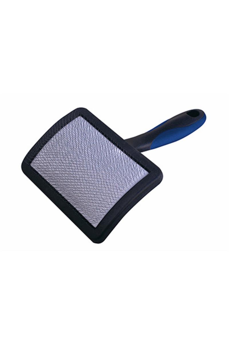 Kardans böjda rygg gör det lättare att nå svåra och känsliga områden. Låg vikt för att minska handtrötthet. Dessa borstar är formad av slagtålig ABS plast med halkfritt handtag. Den smidiga dynan tillåter stiften att böja med håret, vilket minimerar päls skador. Den är en karda som fungerar bra att använda vid torkning pälsen på grund av den extra fina avståndet mellan stiften av rostfritt stål. BRUKSANVISNING : LÅNG PÄLS: Borsta med lätta, långa drag, borsta förbi slutet på hårstråna för att undvika statisk päls och brutna hårstrå. För bästa resultat borsta håret i olika lager. Börja vid botten med att dela pälsen horisontellt, håll upp den oborstade pälsen med din fria hand. Arbeta dig successivt uppåt. Ha din handled rak för att undvika kontakt med din hunds hud. LOCKIG PÄLS: Borsta i pälsens riktning och sen mot riktningen med lätta långa tag. STRÄV PÄLS: Borsta i pälsens riktning och sen mot riktningen om det är nödvändigt, för att ta bort tovor och död päls. Om pälsen är tovig, använd borsten tillsammans med Show Tech Mat Buster. För att undvika tovor bör hunden badas regelbundet, behandlas med balsam och borstas dagligen. Storlek