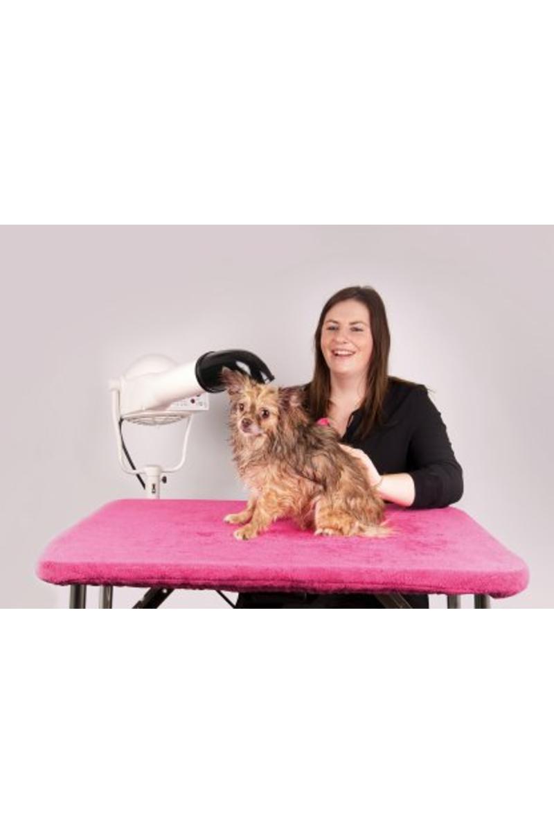 Efter framgången med våra mikrofiberhanddukar och Dry Dudes är vi stolta över att presentera de nya överdragen från Show Tech +. Tillverkad av samma högkvalitativa, superabsorberande mikrofiber, har dessa elastiska bordsskydd en mängd användningsområden. Perfekt när du torkar din hund på bordet. Absorberar vattnet som blåses ut ur pälsen och undviker vattenuppbyggnad på och runt bordet. Överdraget skyddar trimbordet när du använder färger och kalkar. Överdraget ger en bekväm slitstark yta, där hunden känner sig mer avslappnad och förbättrar upplevelsen för hund och groomer. Finns i 3 färger och 3 storlekar, med elastisk kant, för att passa de flesta bord, det hållbara mikrofiberet är tvättbart och tillverkat för att hålla. Tvättbart i 30 grader.