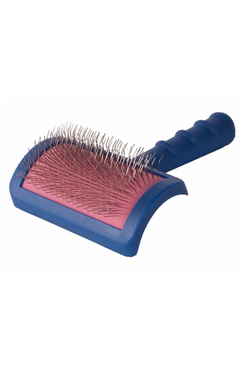 Helt enkelt den bästa professionella kardan som finns ... Den unika plattan med speciellt vinklade tänder är hemligheten till framgången för dessa fantastiska borstar. Tuffer Than Tangles gör det lätt och snabbt att borsta ut pälsen och dessa borstar är extremt lätta och ergonomiska för att minska stress och trötthet i hand och handled. De extra långa stiften tränger in i den tjocka pälsen snabbare och djupare, stiften är super starka och ändå smidiga nog för att snabbt och enkelt borsta ut stora lager utan att orsaka skador. En favorit bland groomers och uppfödare. Långa pälsar: försiktigt borsta med lätta, långa drag, borsta bortom ändarna av hårspetsen för att undvika statiskpäls och hårbrott. För bästa resultat borsta håret i lager. Börja i botten genom att avskilja pälsen horisontellt och håll den oborstade delen upp med din fria hand. Arbeta metodiskt uppåt, håll din handled rak så att du inte skadar hundens hud. Curly Coats: borsta i pälsriktningen och sedan mot den, med hjälp av lätta, långa drag. Strävpäls och alla andra pälstyper: borsta i pälsriktningen och sedan mot pälsriktningen om det behövs för att avlägsna tovor och dött hår. Var särskilt uppmärksam på områden som är benägna att tova sig, som bakom öron, på länderna och under benen. Använd en grov kam för att kontrollera efter eventuella kvarvarande tovor efter borstning. Tuffer än Tangles är idealisk för användning efter att ha badat, under torkning av pälsen. Använd lätta, långa drag med och mot pälsriktningen. Borsta långsamt för att undvika statisk uppbyggnad. Om pälsen är tovig, använd Tuffer än Tangles i kombination med ett Matbuster-mattverktyg. För att förhindra tovor och fläckar borde hundens päls borstas dagligen, badas regelbundet, behandlas med ett balsam och borstas ut under torkning. Storlek 10,5cm *6cm