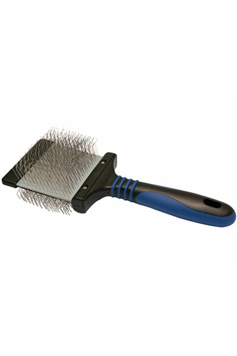 Show Tech Twin Flex Slicker-borsten är speciellt designad för att underlätta borstning, göra det mer effektivt och att undvika smärta för hunden. En unik design med hård och mjuk karda i samma verktyg, gör att du sparar tid och gör det lättare att komma till på svåra ställen. LÅNG PÄLS: Borsta med lätta, långa drag, borsta förbi slutet på hårstråna för att undvika statisk päls och brutna hårstrå. För bästa resultat borsta håret i olika lager. Börja vid botten med att dela pälsen horisontellt, håll upp den oborstade pälsen med din fria hand. Arbeta dig successivt uppåt. Ha din handled rak för att undvika kontakt med din hunds hud. LOCKIG PÄLS: Borsta i pälsens riktning och sen mot riktningen med lätta långa tag. STRÄV PÄLS: Borsta i pälsens riktning och sen mot riktningen om det är nödvändigt, för att ta bort tovor och död päls. Om pälsen är tovig, använd borsten tillsammans med Show Tech Mat Buster. För att undvika tovor bör hunden badas regelbundet, behandlas med balsam och borstas dagligen. Large 7 cm bred.
