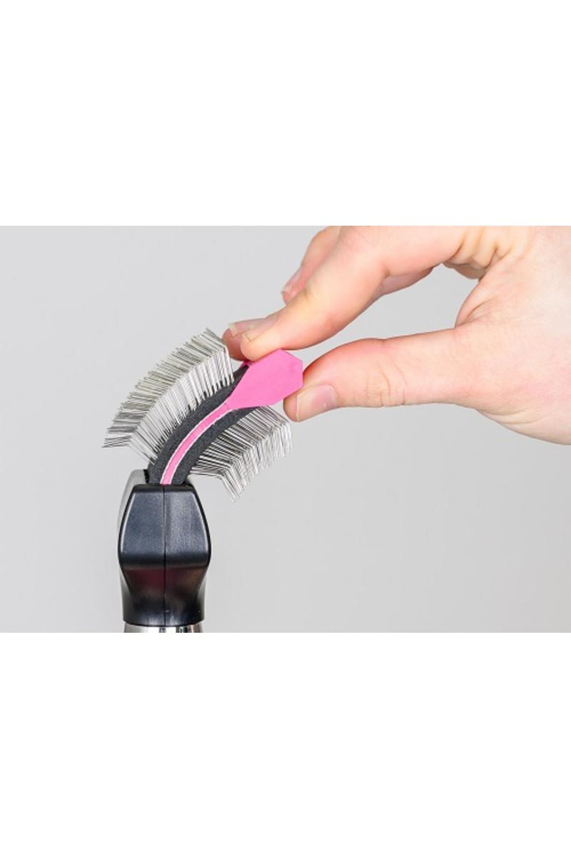 Show Tech + Flex Groom Slicker-borstar är speciellt utformade för att göra borstningen mycket enklare, snabbare och smärtfri för dig och ditt husdjur. De är också väldigt oumbärliga om du vill hålla ditt husdjurs päls frisk och naturlig! Tack vare det ergonomiska, bekväma handtaget gjord av halkskyddande gummi och det flexibla huvudet, följer borsthuvudet formen på ditt husdjurs kropp. Därför garanteras ett minimum av stress på hand och handled och upprepade belastningsskador förhindras. En annan viktig funktion är att borsten kan användas på båda sidor, vilket gör den perfekt för både vänster- och högerhänt groomers. Borststiftet säkerställer ett bra grepp på pälsen och löst och dött hår samlas i borstplattan. Dags att säga adjö till tovor, päls som flyger runt och smärtsamma handleder! Daglig pälsvård för små till medium hundar, med mjuk och fin päls. Och för små borstytor. Mjuk borstdyna.