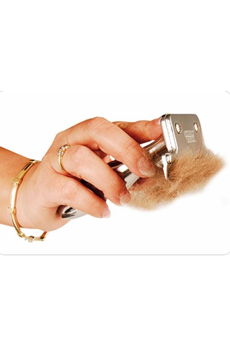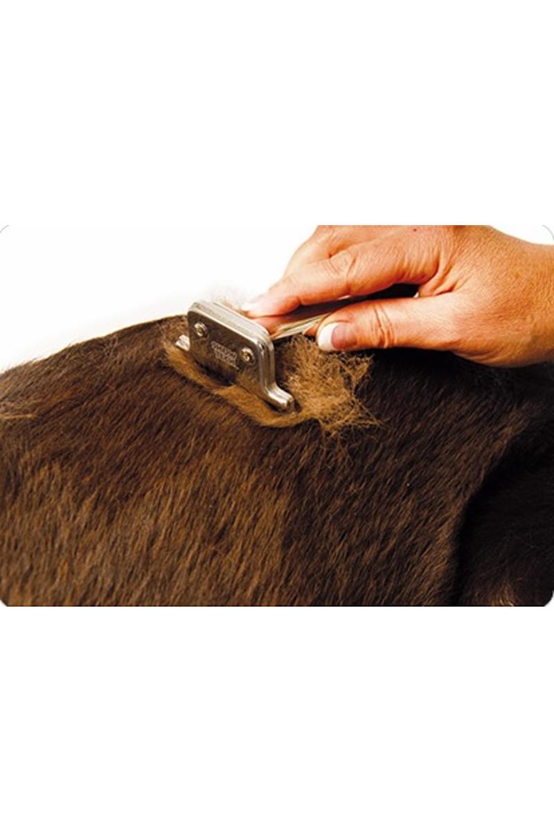 Den tar effektivt bort löst hår. Detta redskap är vasst och skall därför hållas borta från barn. Var även försiktig vid hudveck, spenar mm. Bladets bred är 7cm.
