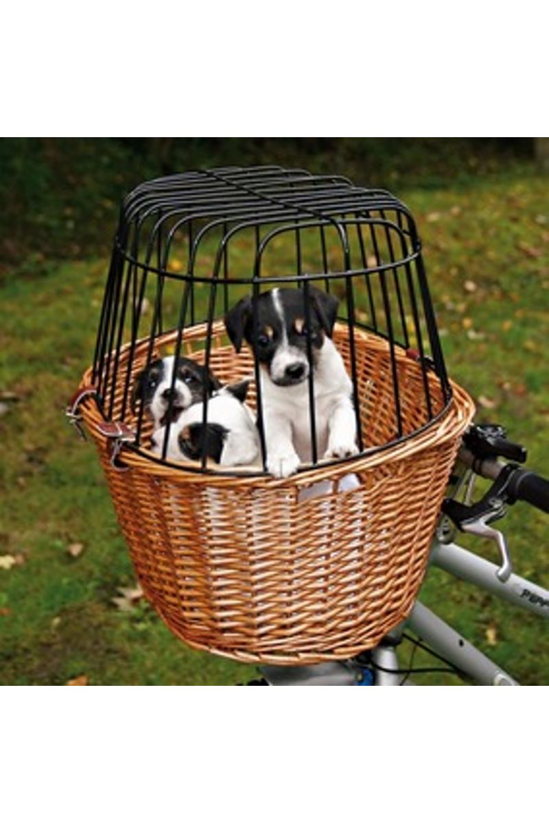 Cykelkorg i brun pil med gallertak lackerad i svart färg.