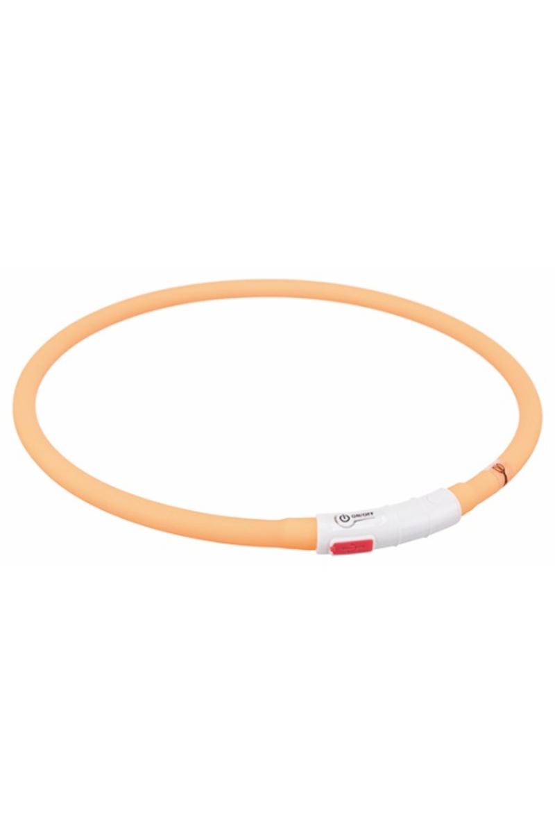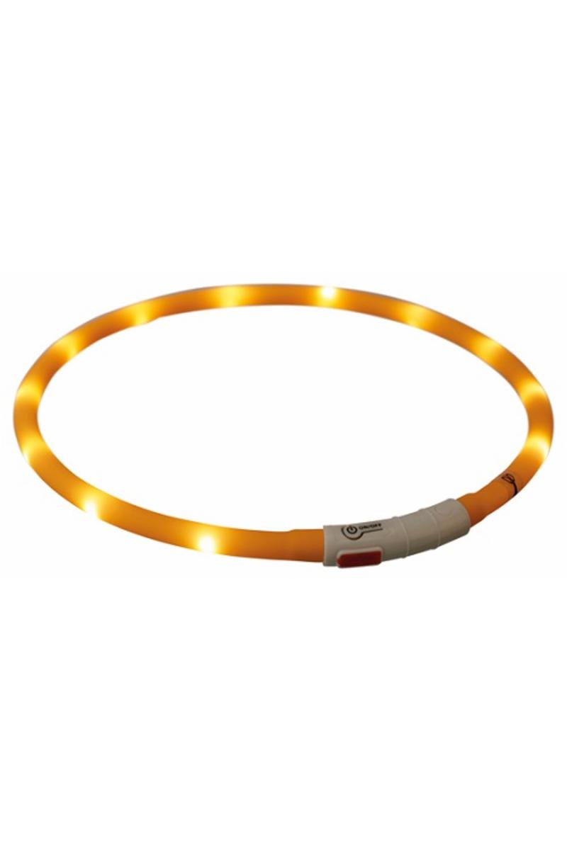 Beskrivning Tillverkad av silikon/plast. Ett "brottsäkert" halsband med klicklås. Går att ladda med den medföljande USB-kabeln. Går enkelt att korta av till önskad storlek. Ca 3,5 timmar blinkande ljus eller ca 1,5 timmar kontinuerligt ljus. USB-kabel och skruvmejsel ingår. Vattentåligt. Syns på upp till 400 meter.