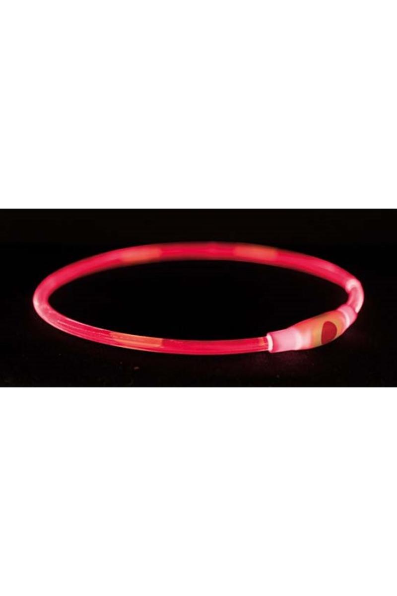 USB Flashring, L-XL: 65 cm/ø 8 mm, röd TPU/plast upp till 14 h blinkande ljus, upp till 6 h fast ljus stänktålig storleken kan enkelt anpassas genom att klippa av inklusive USB-kabel