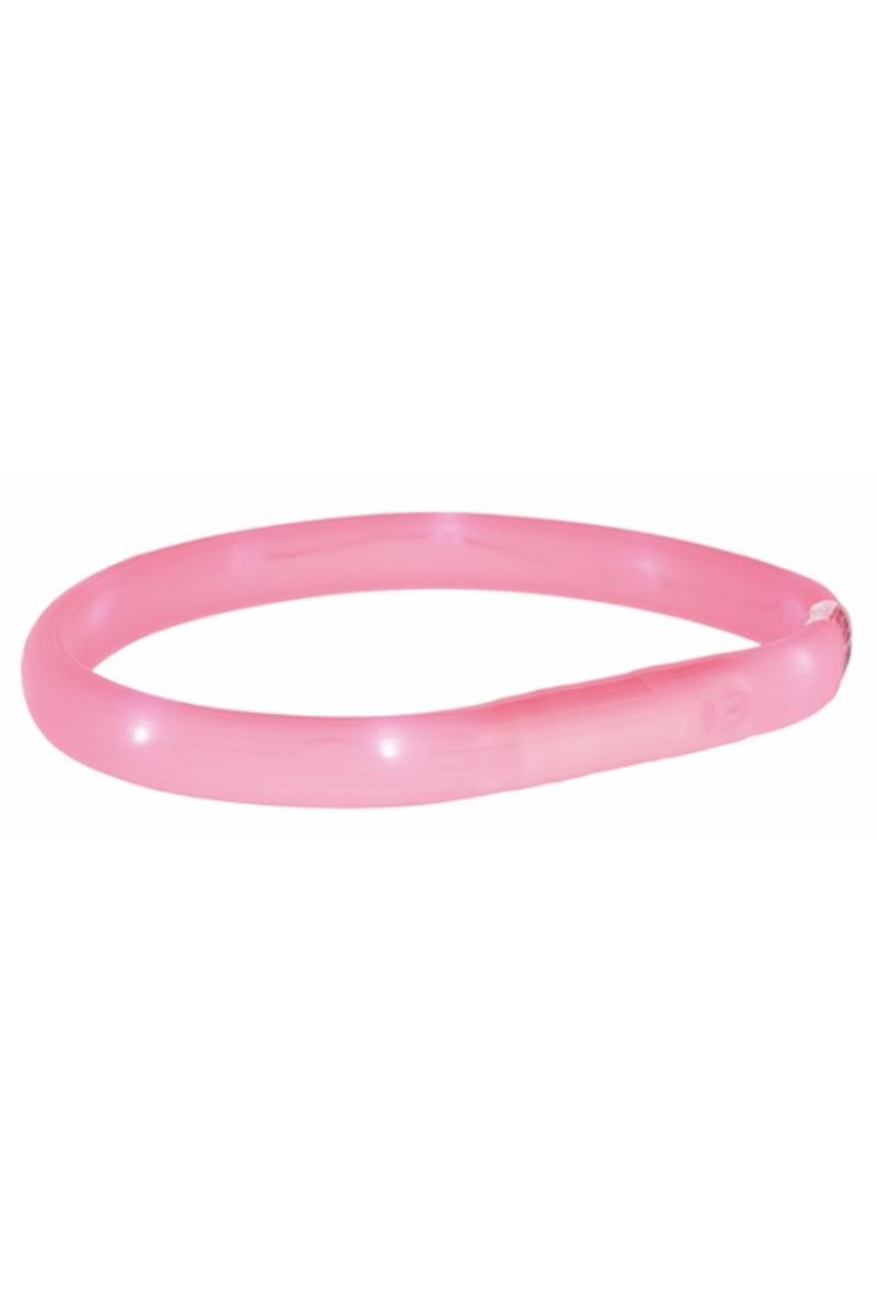 35cm/18mm Rosa. Uppladdningsbart lysande hundhalsband med USB-kabel.