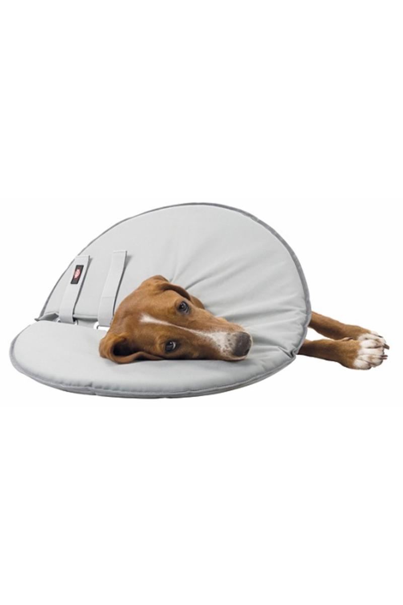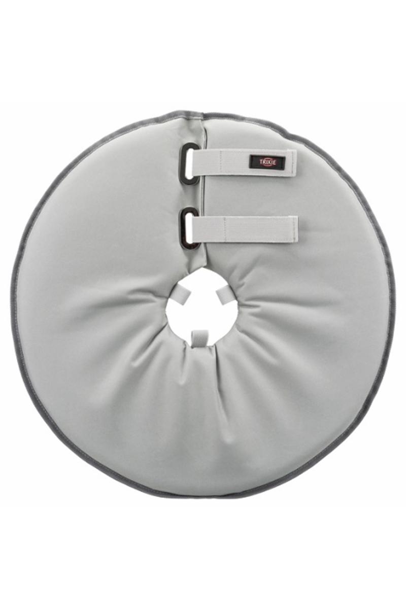 Beskrivning Mjuk och flexibel hundkrage som förhindrar husdjur från att slicka och bita i sår eller på bandage. Tillverkad av polyester och skumgummi vilket gör den extra bekväm att bära. Kragen är böjbar vilket gör att den inte fastnar mot föremål, väggar eller trappor. Passar extra bra till känsliga husdjur som inte gillar kragar i hårdplast. Husdjuret kan både se, höra, äta, dricka, leka och sova med kragen. Enkel att rengöra med en fuktig trasa. Kragen har öglor att trä halsband igenom, vilket gör kragen svårare att få av. Denna storlek passar hunder med halsomkrets: 46-49 cm. Finns i flera storlekar. Färg: grå