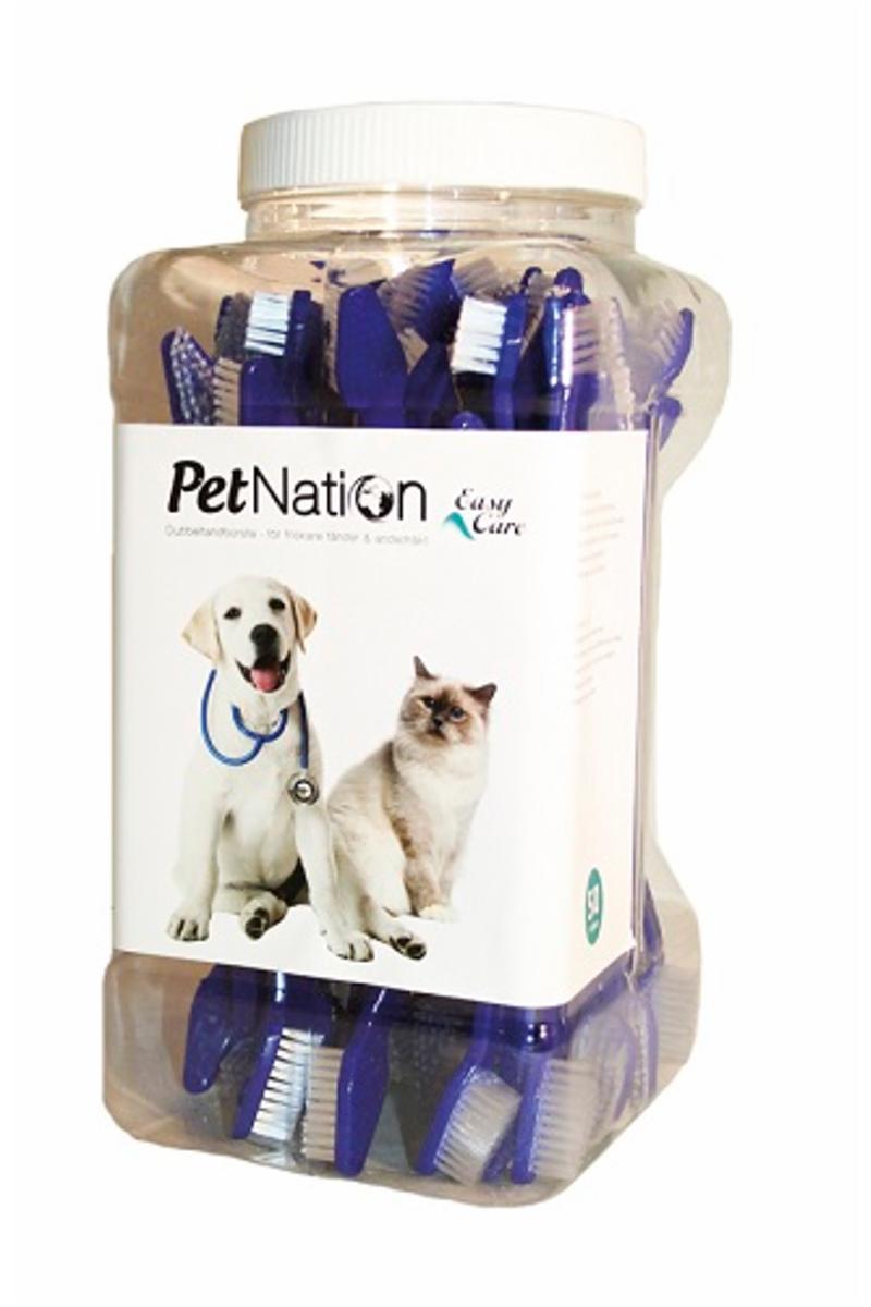 Beskrivning Främjar starka, rena tänder och ett friskt tandkött. En rutinmässig tandvård skyddar ditt husdjur mot dålig andedräkt, känsligt och blödande tandkött, tandlossning och plack. Tandborsten har två olika borsthuvuden: stort borsthuvud för framtänder, litet borsthuvud för kindtänder. Instruktioner: Applicera en liten mängd djurtandkräm på borsten. Öppna försiktigt husdjurets mun och håll upp läppar och kind. Borsta försiktigt både tänder och tandkött genom att dra tandborsten försiktigt fram och tillbaka. Djuret kan känna obehag i början, men belöna med godis och ge mycket beröm så kommer tandborstningen snart att bli en positiv rutin. Rekommendationer från veterinären är att helst borsta djurets tänder en gång i veckan. 21 cm lång, mörkblå