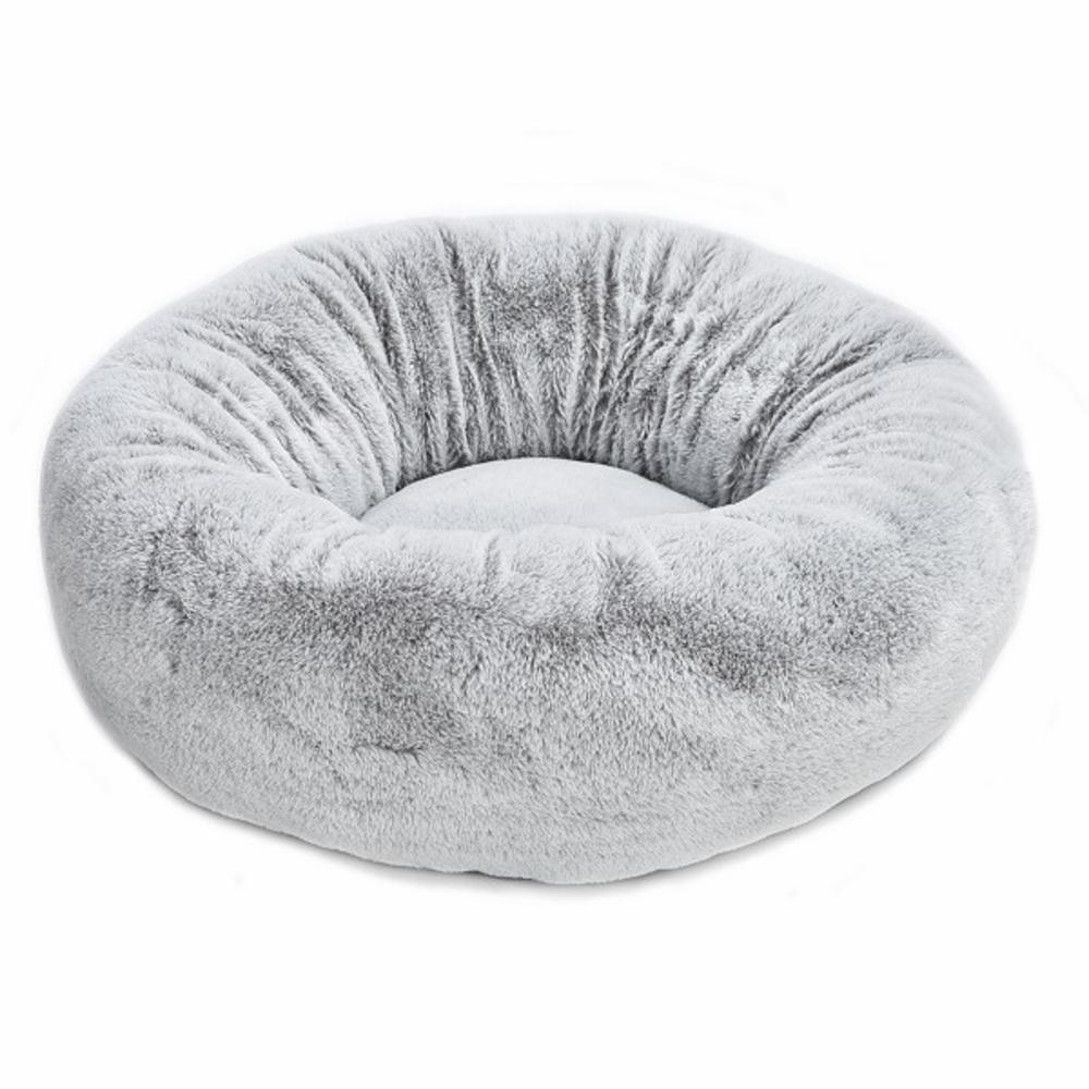Välstoppad och rejäl hundsäng i supermjuk, silvergrå plysch. I denna runda bädd kan din hund sova lugnt, tryggt och bekvämt. Plyschklädseln är avtagbar och knäpps enkelt av med blixtlås.